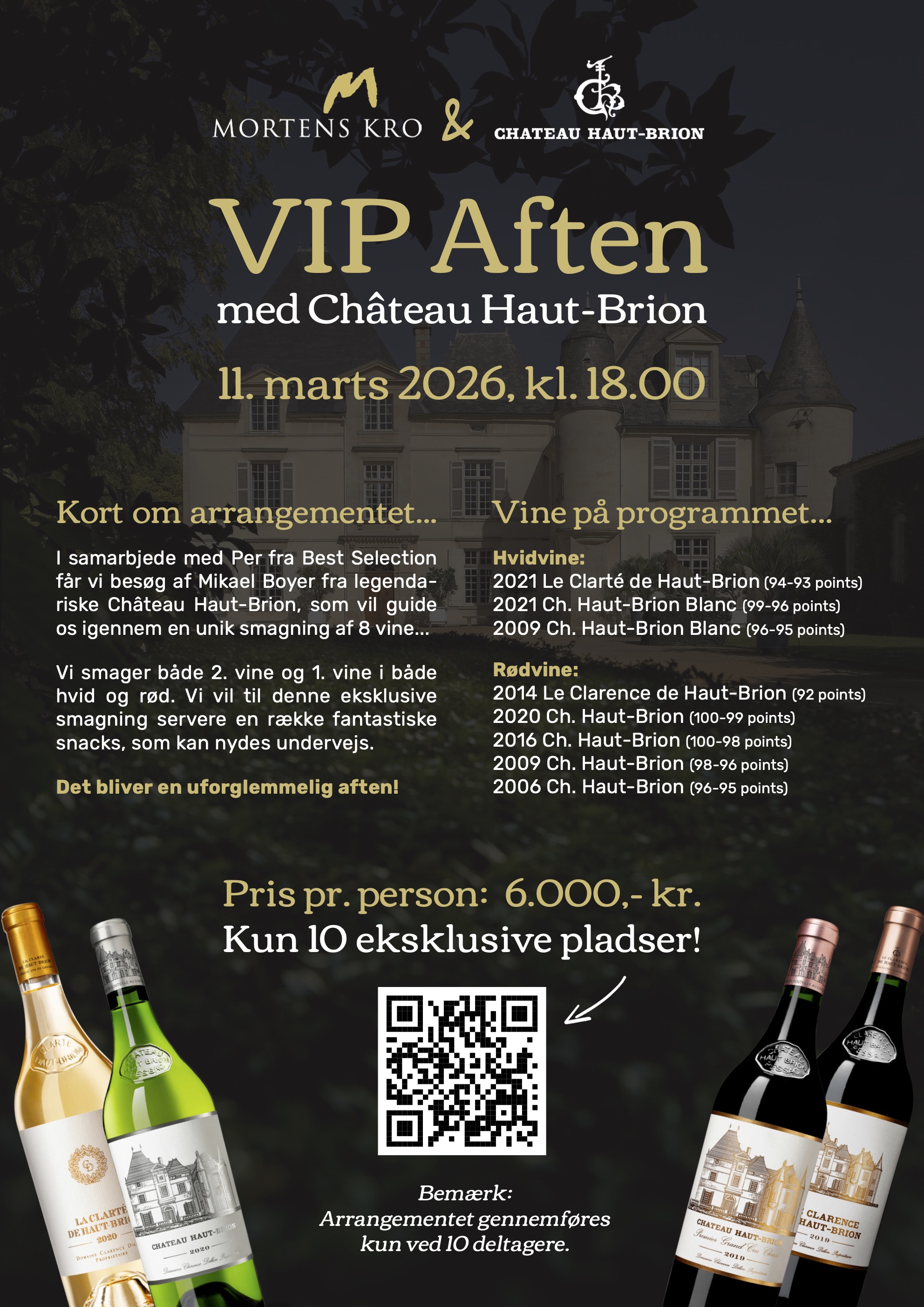Klassisk vinmenu med skiftende vine af høj kvalitet til hver ret.