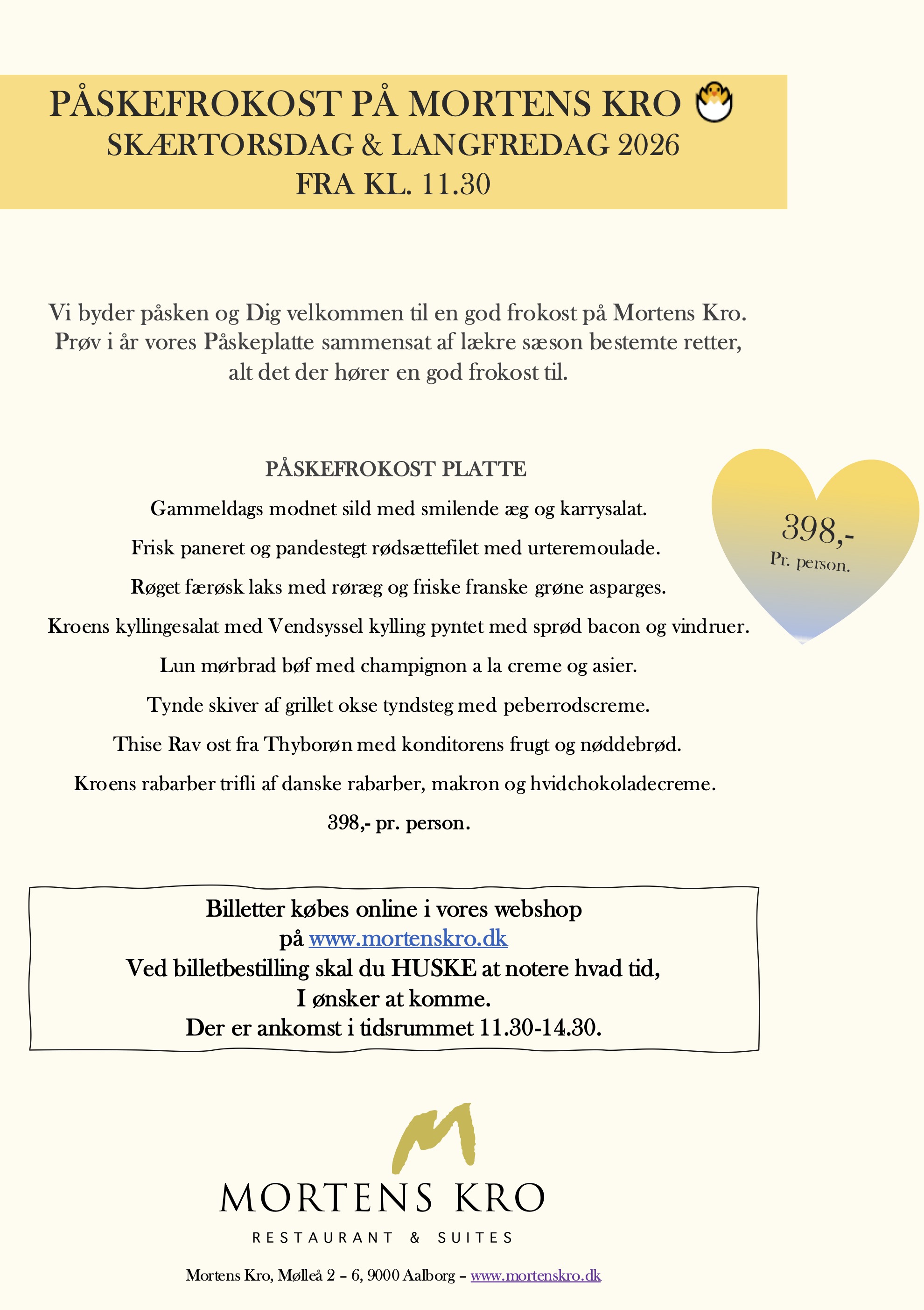 PÅSKE FROKOST TILBUD sælges kun som billetter og kan ikke købes a la carte