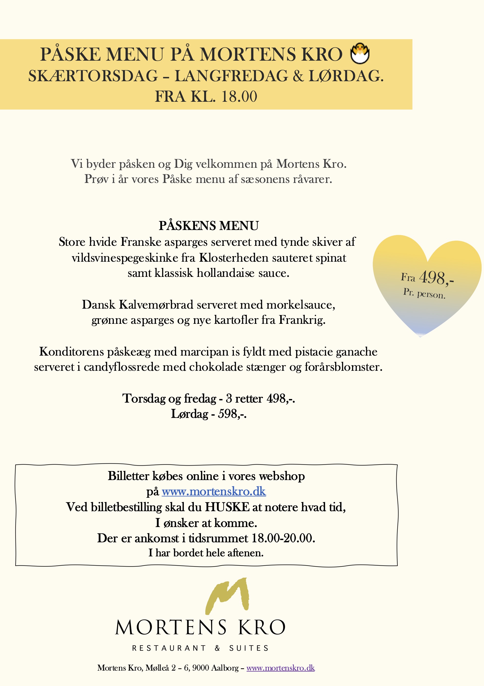 PÅSKE MENU 3 RETTER kun 498,- incl Appetizer, brød, smørog isvand